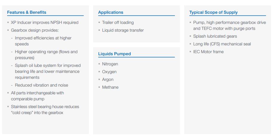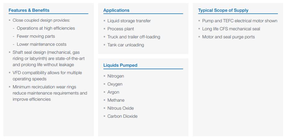 Horizontal direct coupled Cryogenic Pumps with a flow capacity up to 130 m3/h.