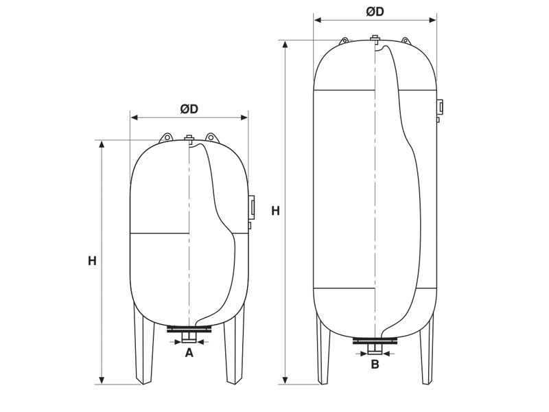 • It is the product used in hydrophore water transfer and water supply systems to balance the changing water volume due to temperature change in heating, cooling, air conditioning, solar energy and domestic hot water systems, to reduce the number of switches in the system and to absorb pressure shocks.